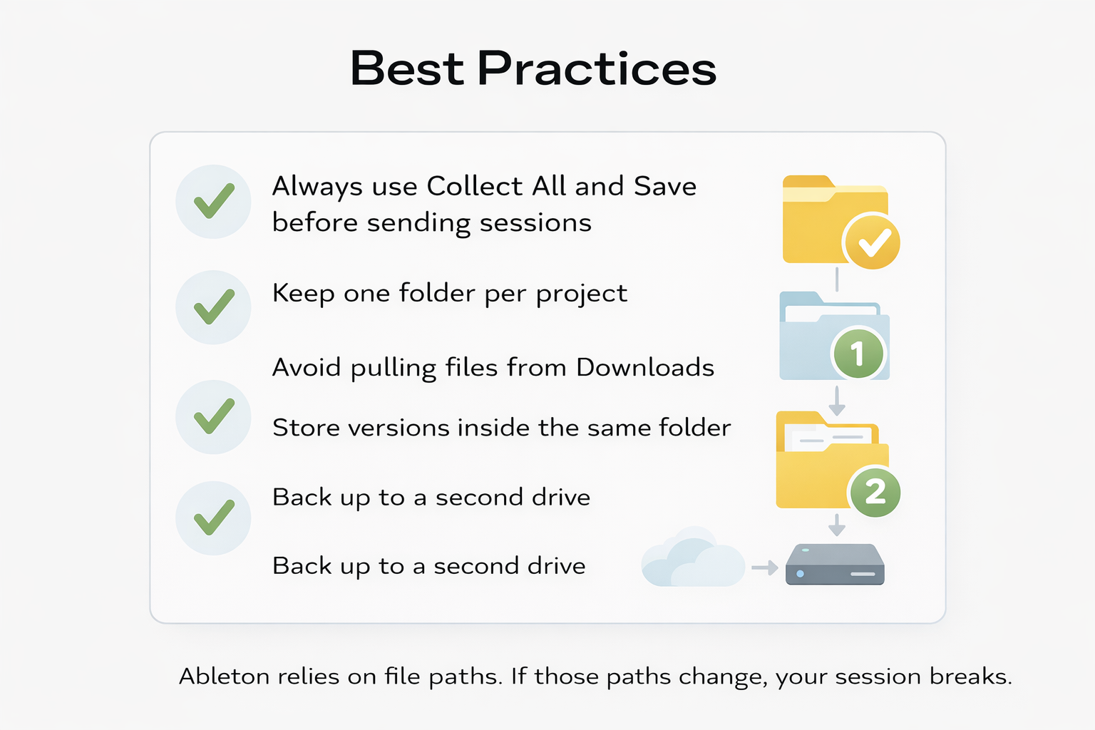 Modern music production workflows move fast. Files get pulled from desktops, external drives, downloads folders, and collaborators’ systems. Over time, sessions break. Ableton Live includes a built-in feature designed to prevent this: Collect All and Save.If you’re not using it properly, you’re risking your work.